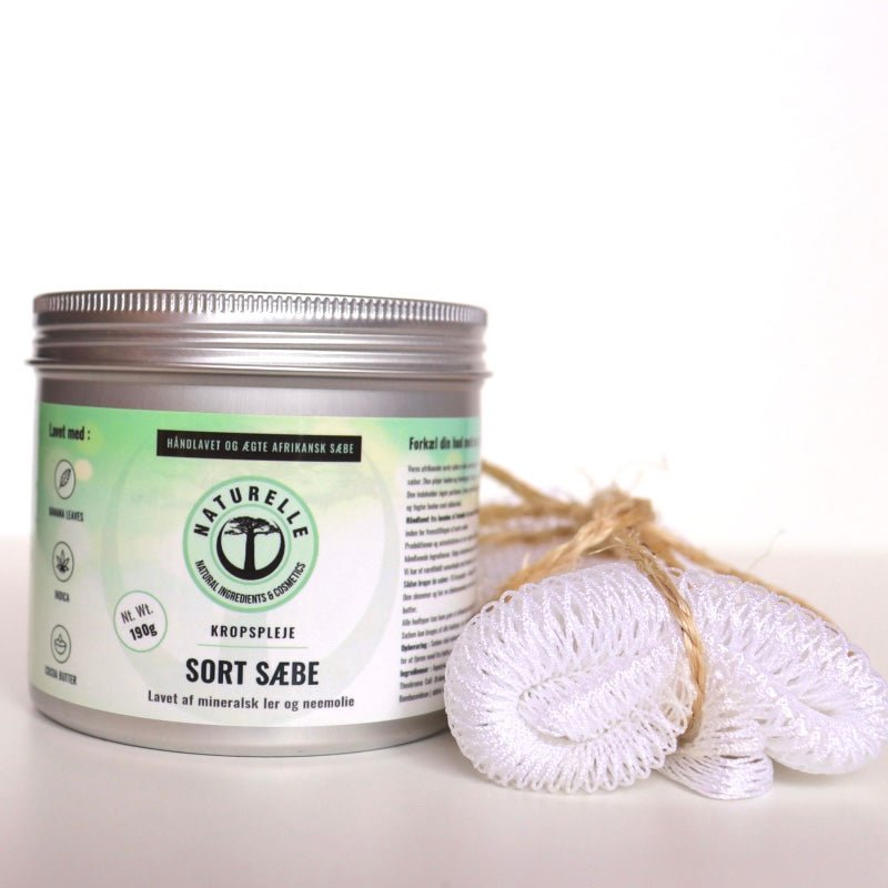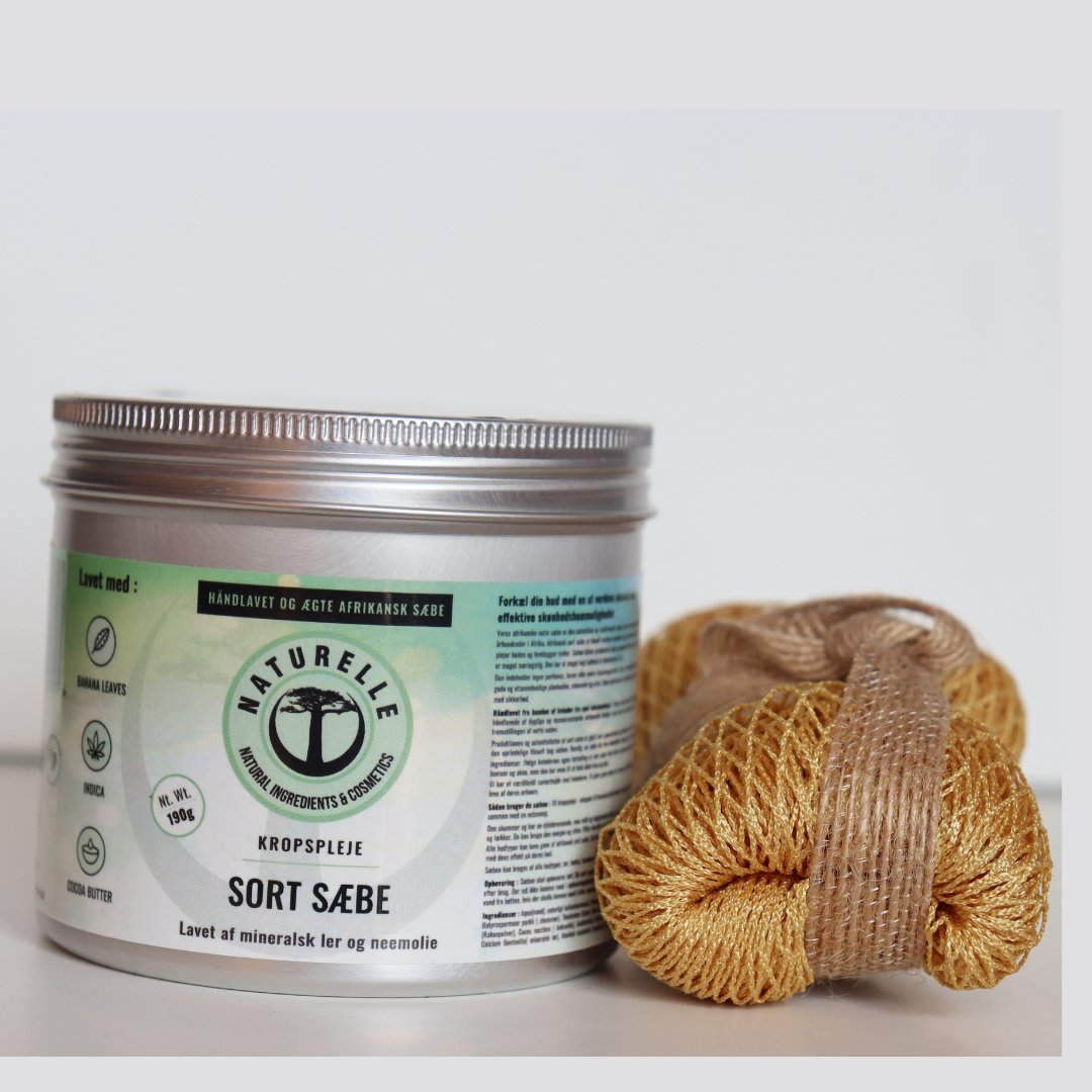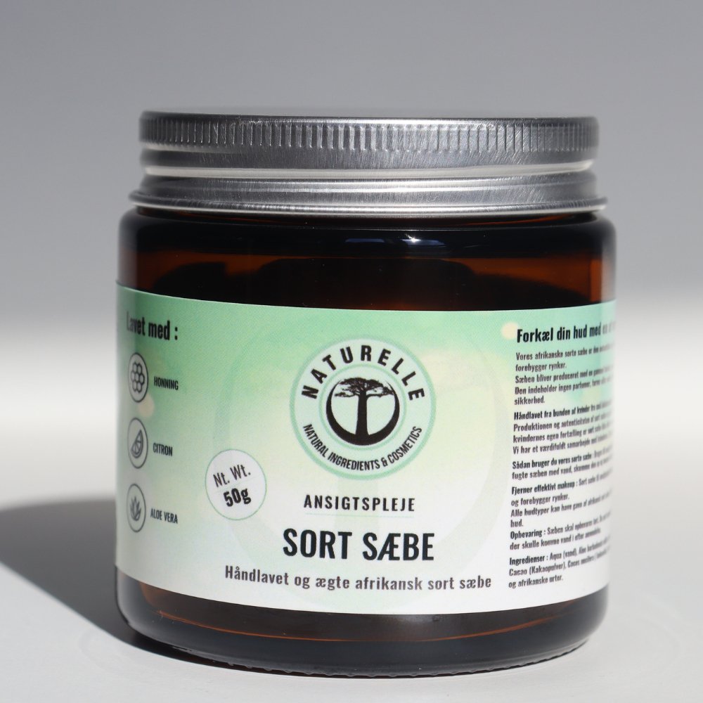 Vores sorte sæbe til kropspleje er en autentisk og traditionel sæbe, som er lavet på den gamle sæbe-fremstillingsteknik opfundet i Vestafrika for flere hundreder siden af de gamle vestafrikanere. Vi går ikke på kompromis med kvaliteten og respekterer derfor visdommen og ritualerne bag produktionen af den autentiske sorte sæbe. Sæben har en naturlig og behagelig duft af økologisk kakao-,og sheasmør, moringa, kokosolie, traditionelle afrikanske urter og andre næringsfulde ingredienser. Den er en meget næringsrig sæbe som renser, plejer og heler huden i dybden.