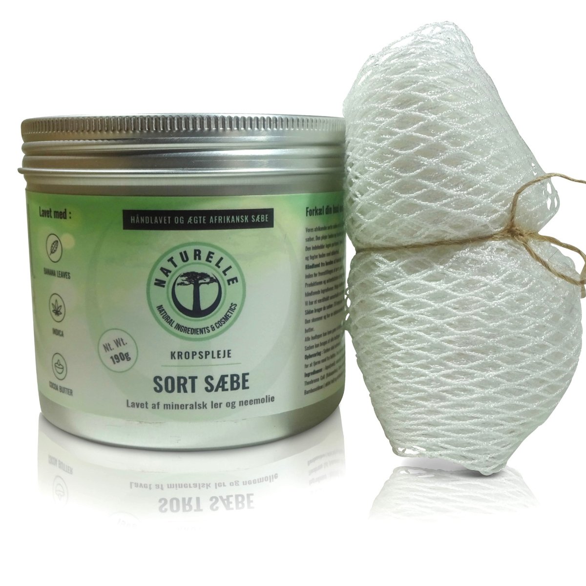 Opnå flot og stram hud med vores sort sæbe til kropspleje. Sæben er egnet til alle uanset alder. Sort sæbe bliver brugt til at vaske spædbørn, da det er den mildeste og mest næringsfulde sæbe som findes. Den er fyldt med gode planteolier & urter som plejer huden.
